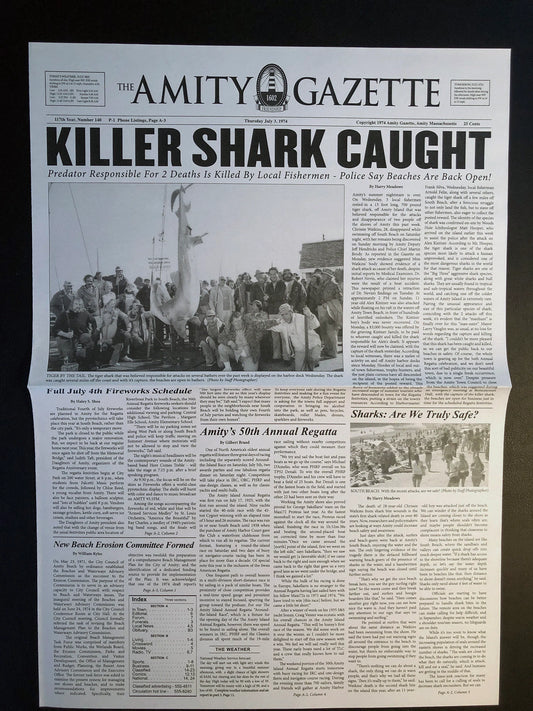 1975 JAWS Killer Shark Newspaper Movie Prop, Jaws Memorabilia, Amity Island 70's Retro 1970s Action Movies -Gifts for Him - DadGift