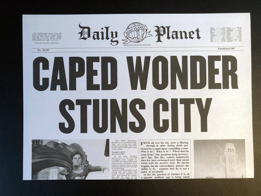 1978 Superman Caped Wonder Stuns City Daily Planet Newspaper Replica - Christopher Reeve - Metropolis -
