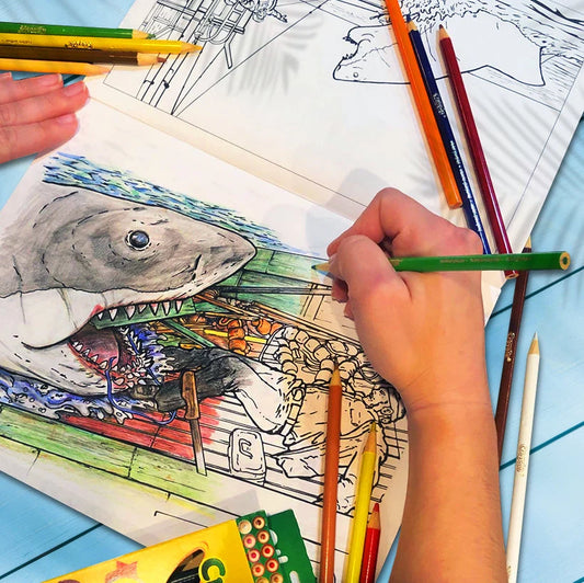 "JAWS" Coloring Book, Quint, Brody & Hooper - Amity Great White Shark, Gifts for Adults & Kids